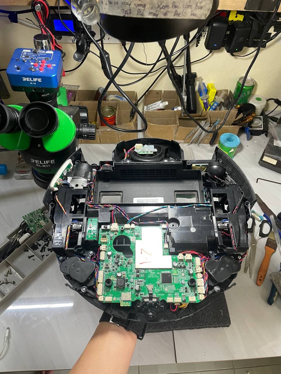 Trung tâm được trang bị hệ thống máy móc và công cụ sửa chữa tiên tiến, bao gồm các thiết bị chẩn đoán lỗi chuyên dụng, dụng cụ đo kiểm chính xác, và phần mềm phân tích hiện đại. Với trang thiết bị được cập nhật thường xuyên, chúng tôi có thể xử lý hiệu quả mọi vấn đề của robot hút bụi, từ những lỗi phần cứng phức tạp như hỏng bo mạch, động cơ, cảm biến, cho đến các sự cố phần mềm như lỗi hệ điều hành, ứng dụng điều khiển, hay các vấn đề về kết nối và định vị.